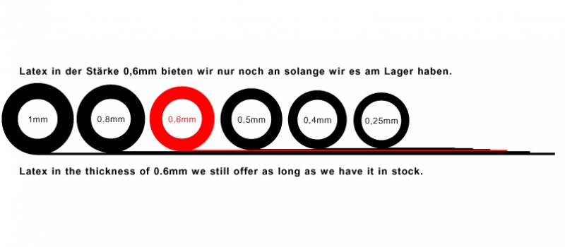 Aus diesem Grund habe ich mich entschlossen die Latexstärke 0,6mm auslaufen zu lassen, sollten sie für ihre Bestellung diese wünschen bitte zuvor anfragen.
