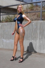 *) Special-Fit is an Option for more emphasis on the chest area. The catsuit comes closer the breastbone and goes deeper into the breastfold. It is higly recommented for women from C-Cup. It looks like the catsuit has an underwire build inside.